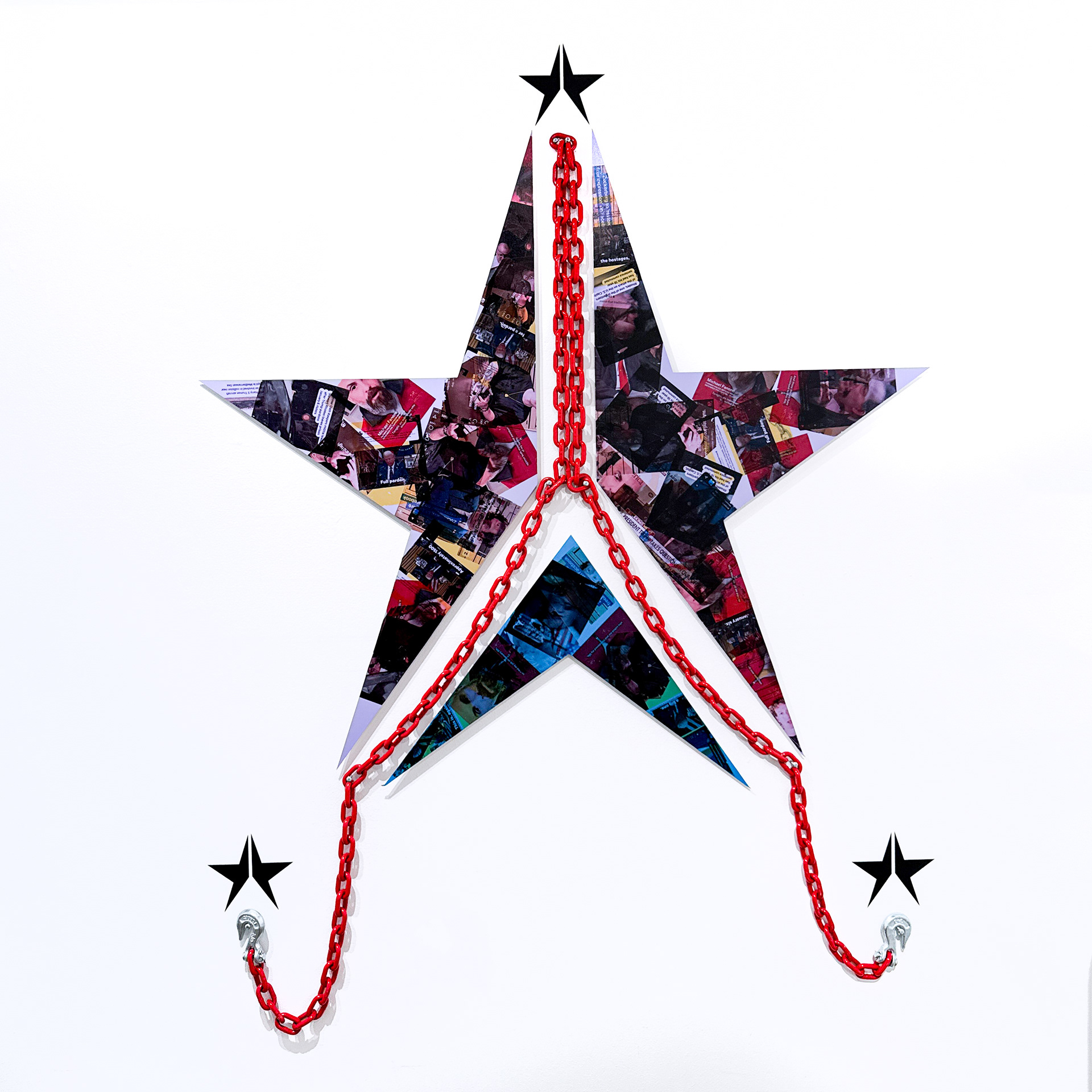 Our Better Angels: J6, 2025, acrylic image transfer on aluminum dibond, chain, vinyl.