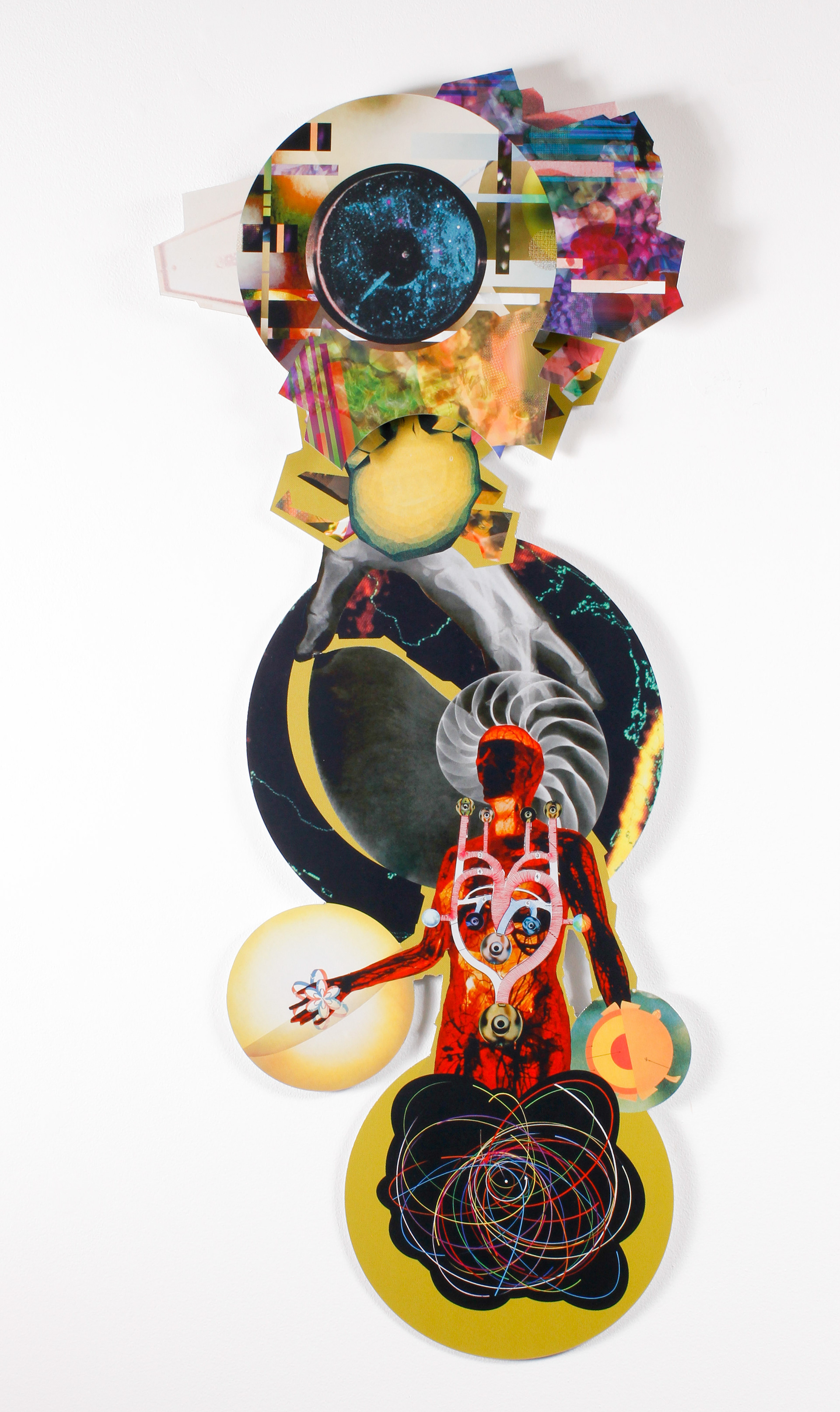 Transmission 7, 2018, manipulated analog and digital collage on aluminum Dibond, 20 x 20 in